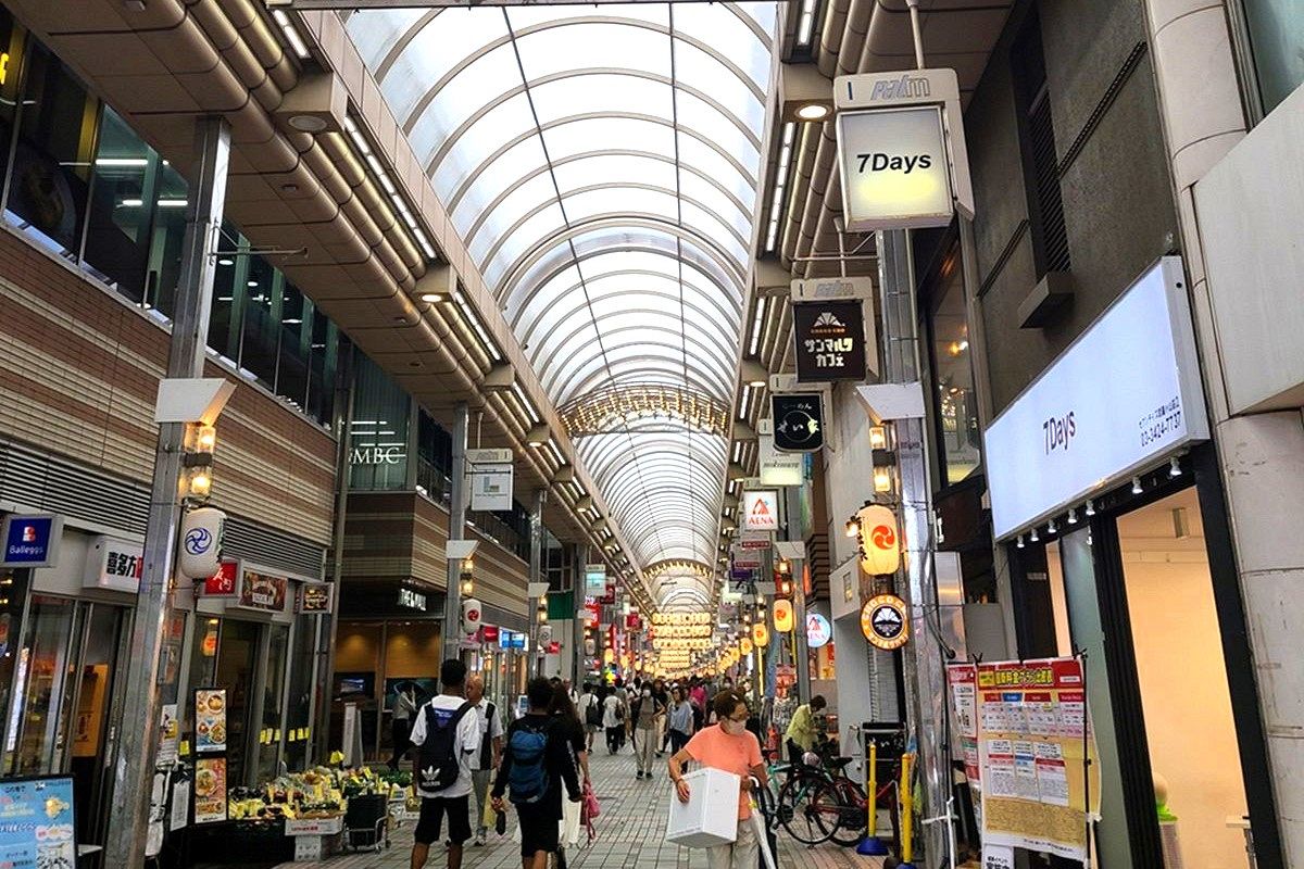 日本初の大型アーケード街で、完成時は「東洋一のアーケード」と呼ばれた。約250店舗からなり、全長は約800メートルある。